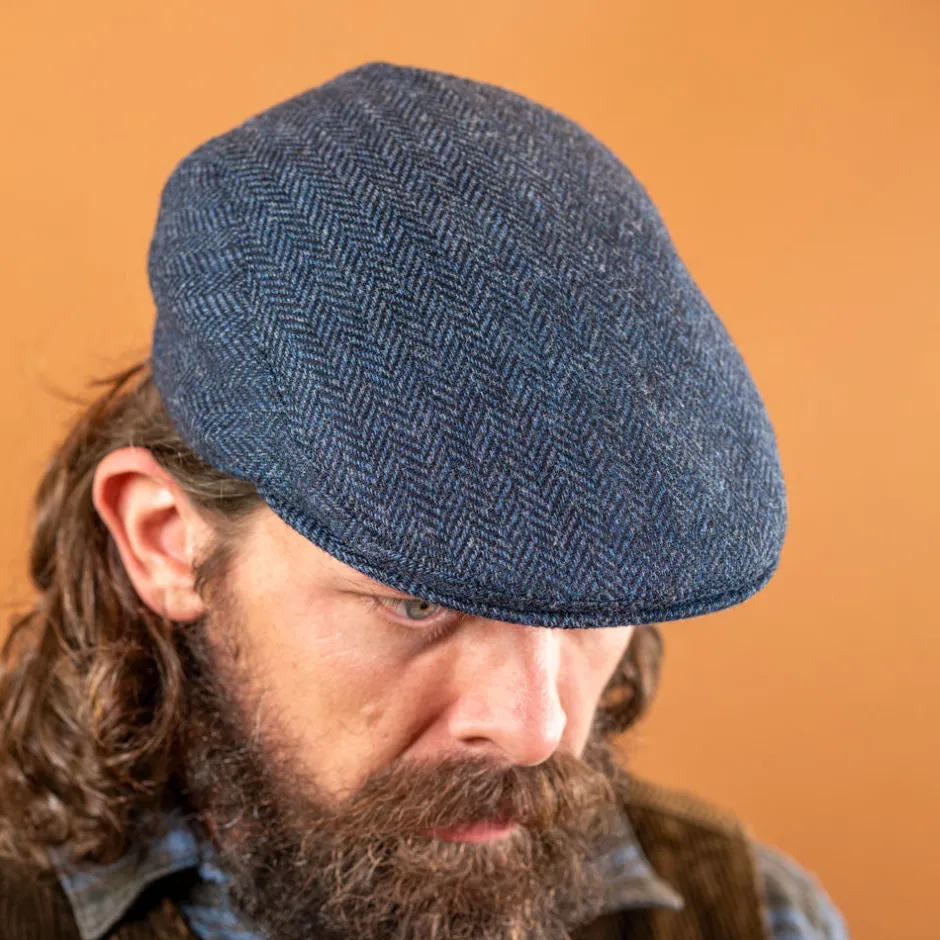 Schmal geschnittene Schiebermütze aus Schurwolle mit Fischgratmuster
