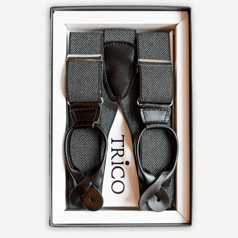 Trico Hosenträger>Hosenträger 36mm breit mit Rollzug Schwarz Fischgrat