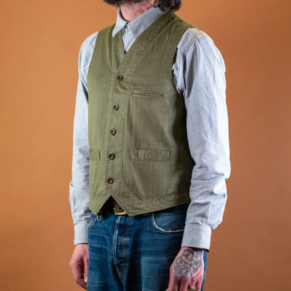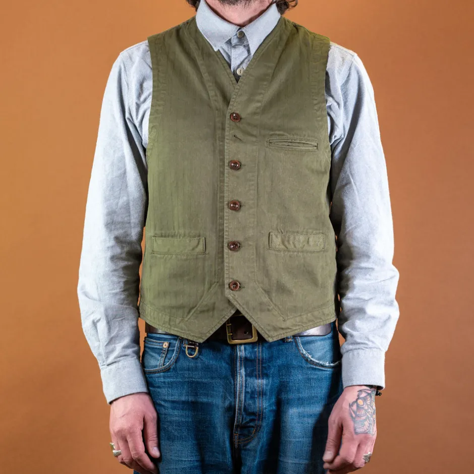 Weste mit 3 Taschen und Steinnussknöpfen in schönem Baumwolle-Fischgrat