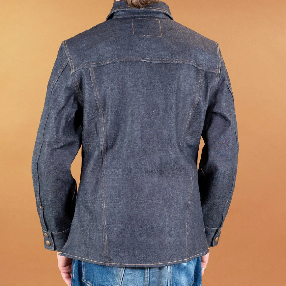Indigofera Copeland Hemd aus 13oz japanischem Selvedge Denim mit 2 Brusttaschen, kann auch als Jacke getragen werden