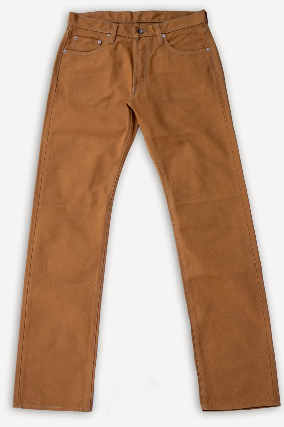 Die mittelhohe, gerade geschnittene Jeans aus 17-Unzen-Duck-Canvas. Im Gegensatz zum Denim ist dieser Canvas in einer dichten Leinwandbindung gewebt – was ihn zu einem der robustesten Stoffe von Iron Heart macht. Die braune Farbgebung bietet eine erfrischende Alternative zu Indigo-Jeans, ideal zum Kombinieren mit einem schlichten T-Shirt oder zum Kombinieren mit einem Jeans- oder Chambray-Hemd.